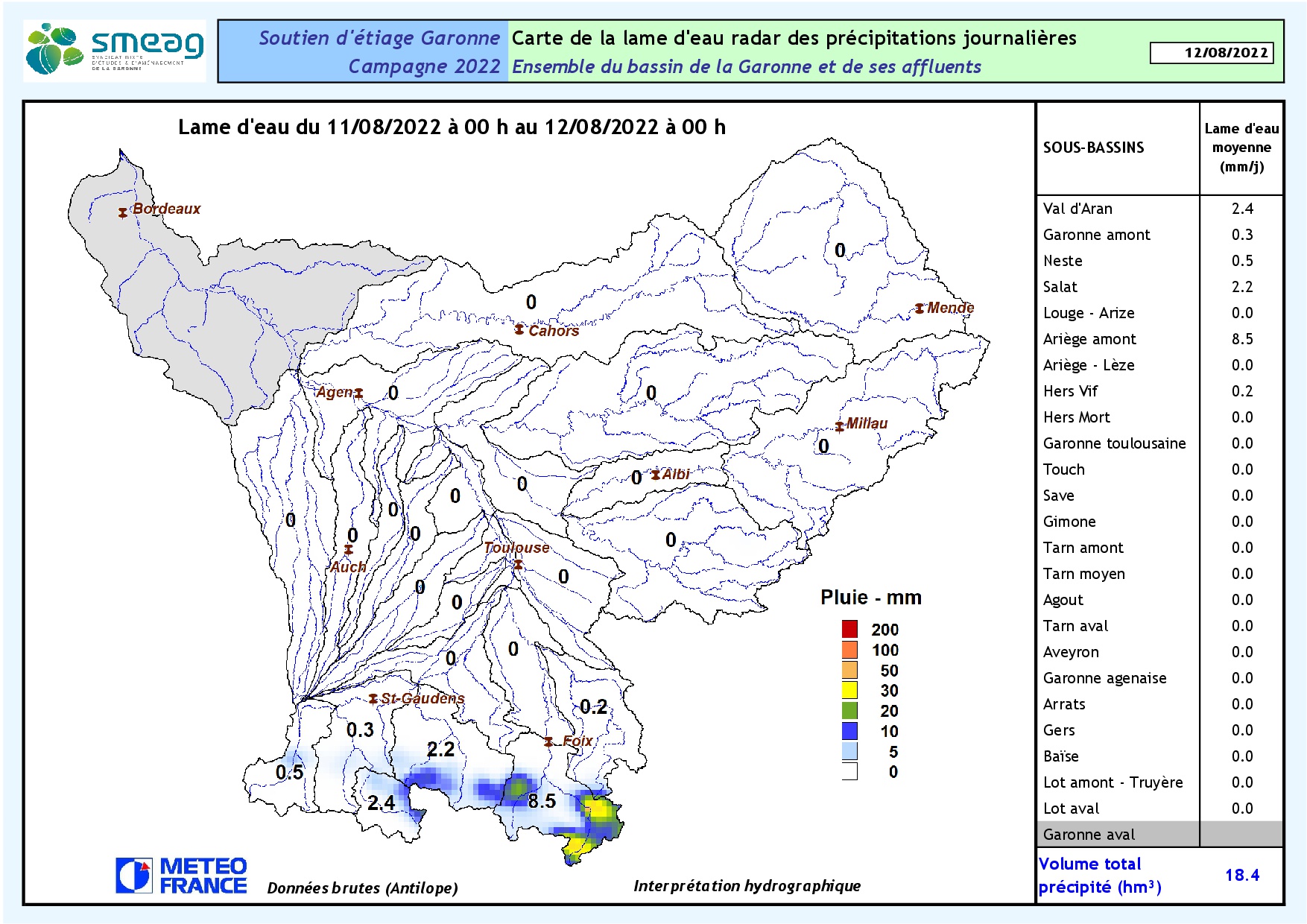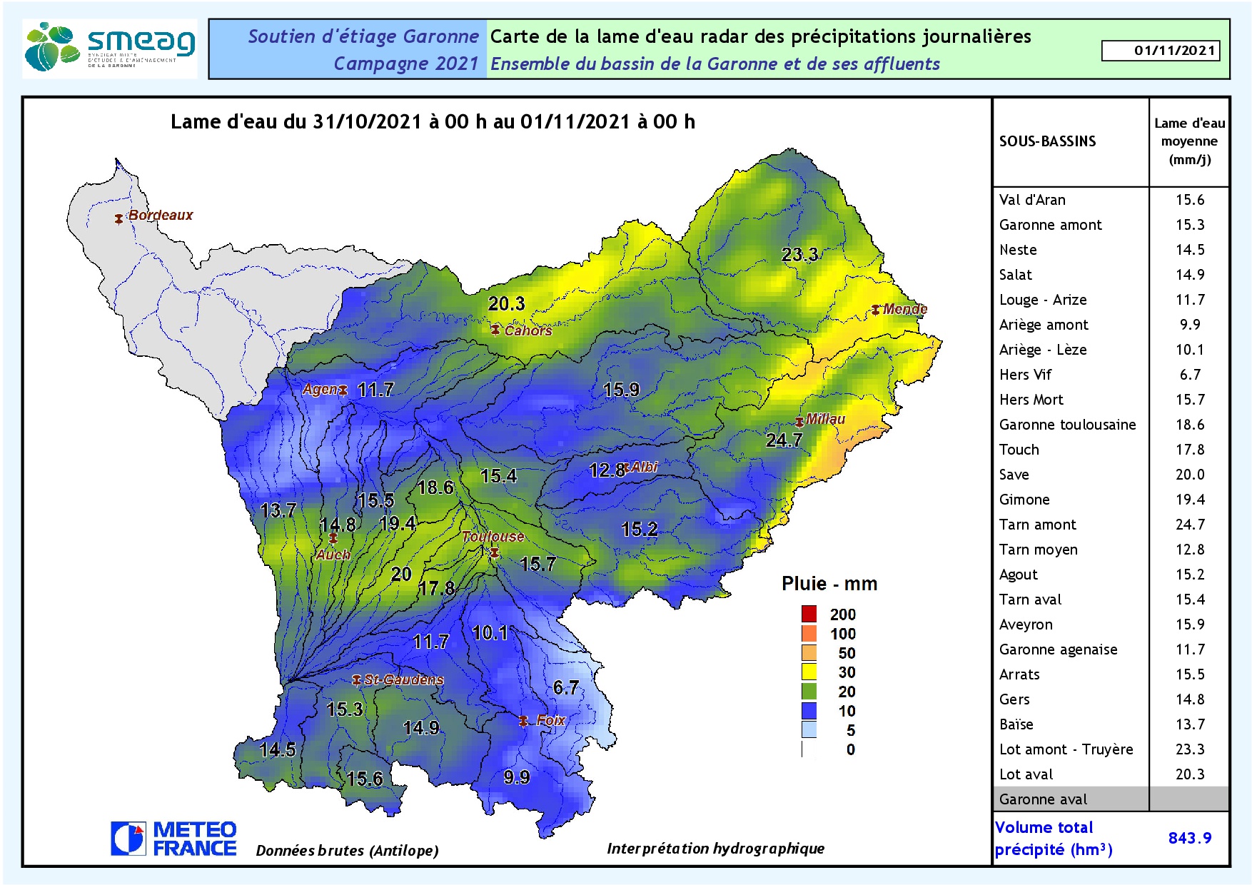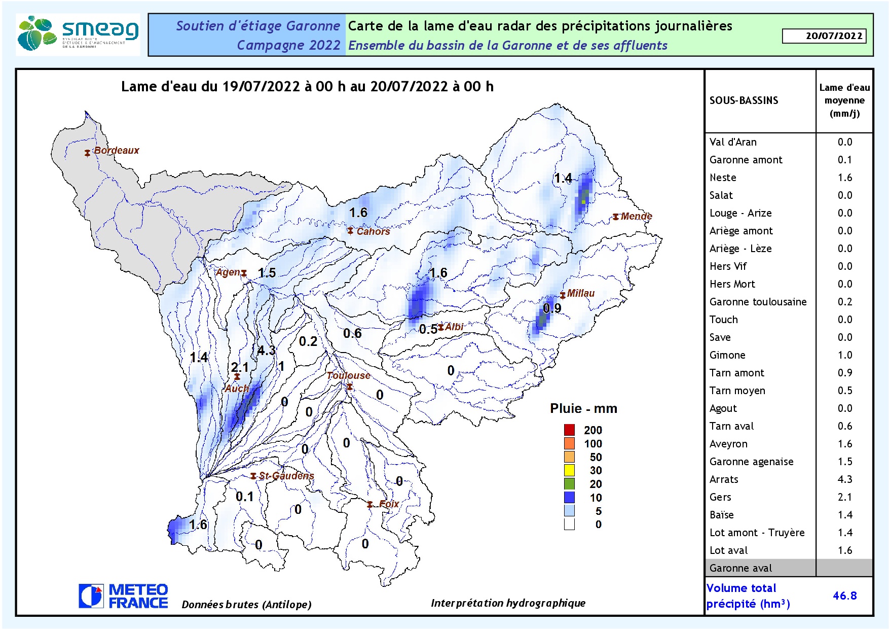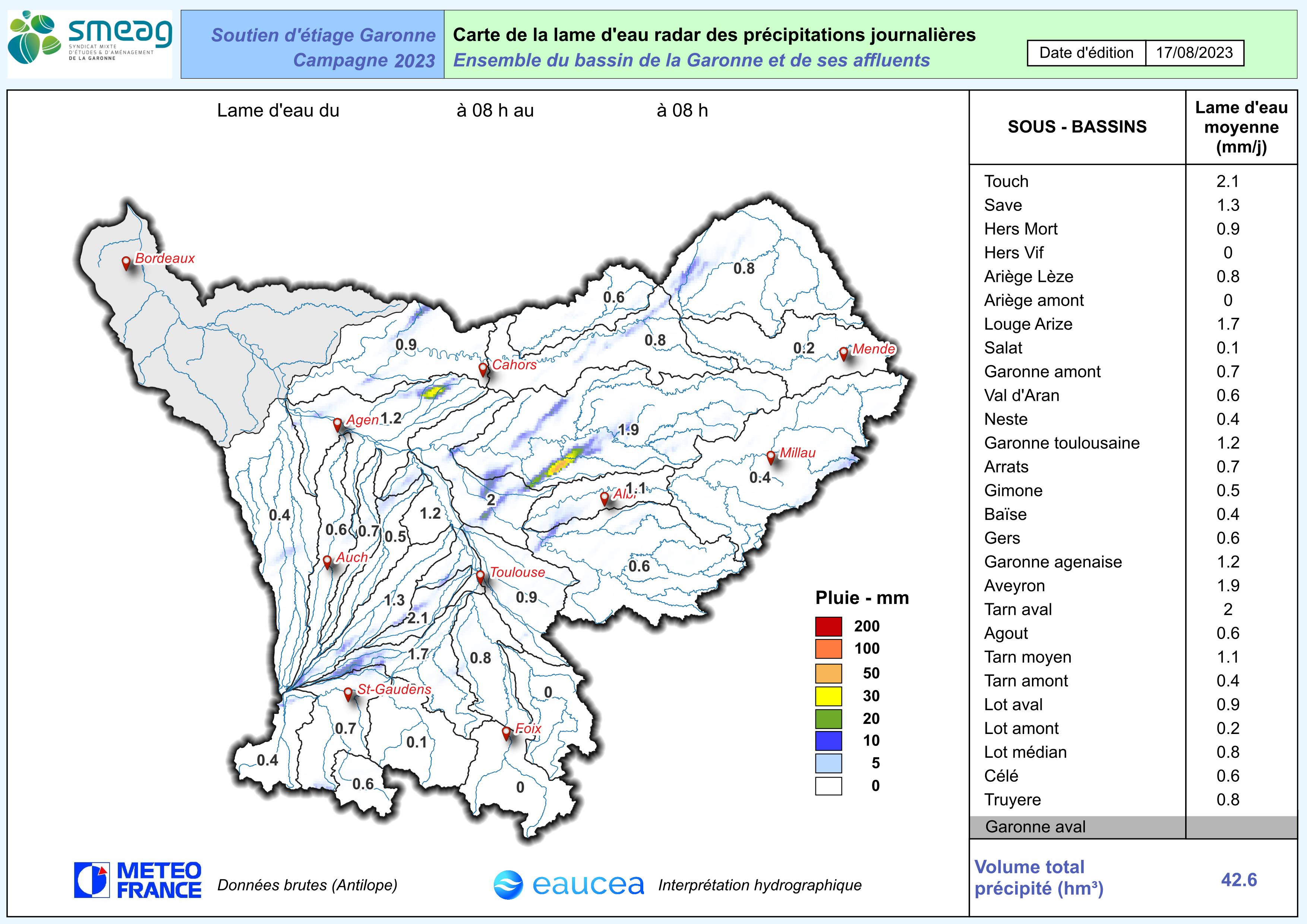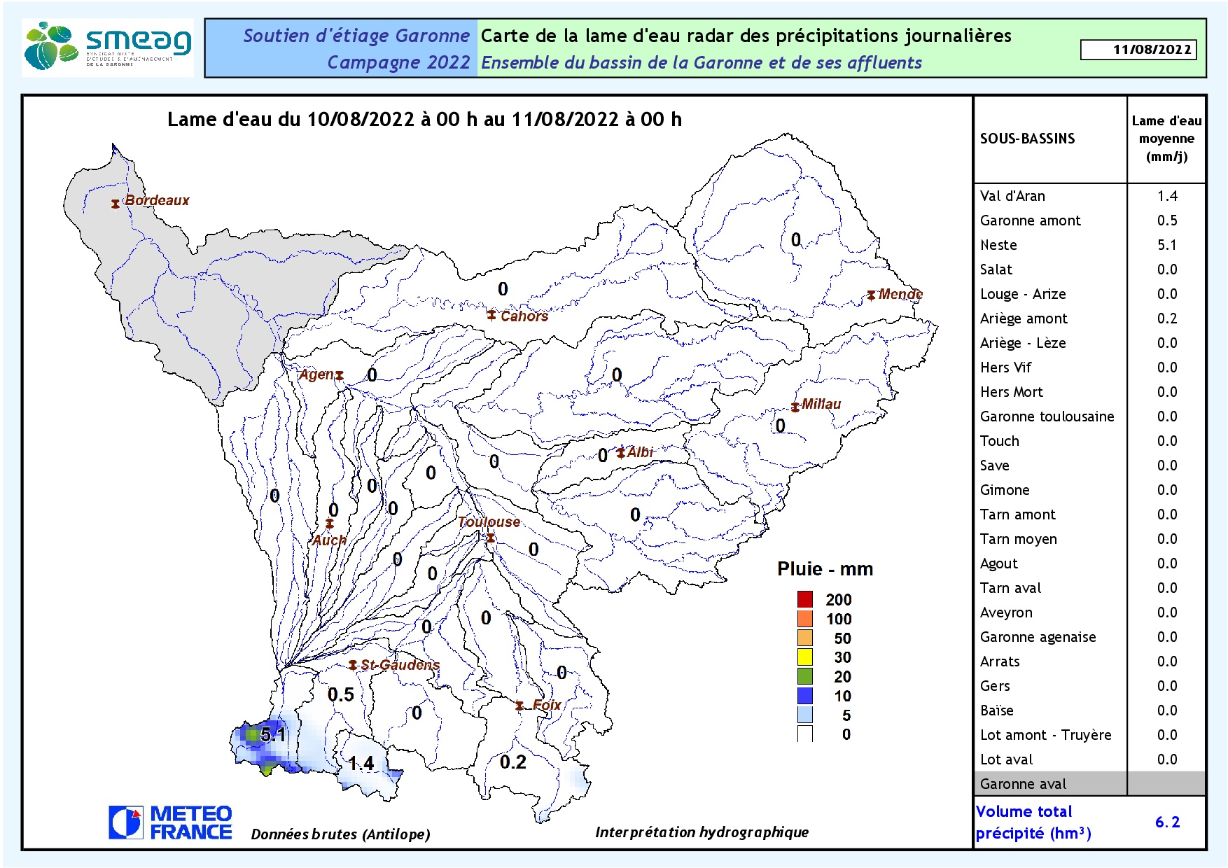 Cette carte illustre les quantités d'eau précipitées sur 24 heures par sous-bassins versants (source : images radar Météo France).