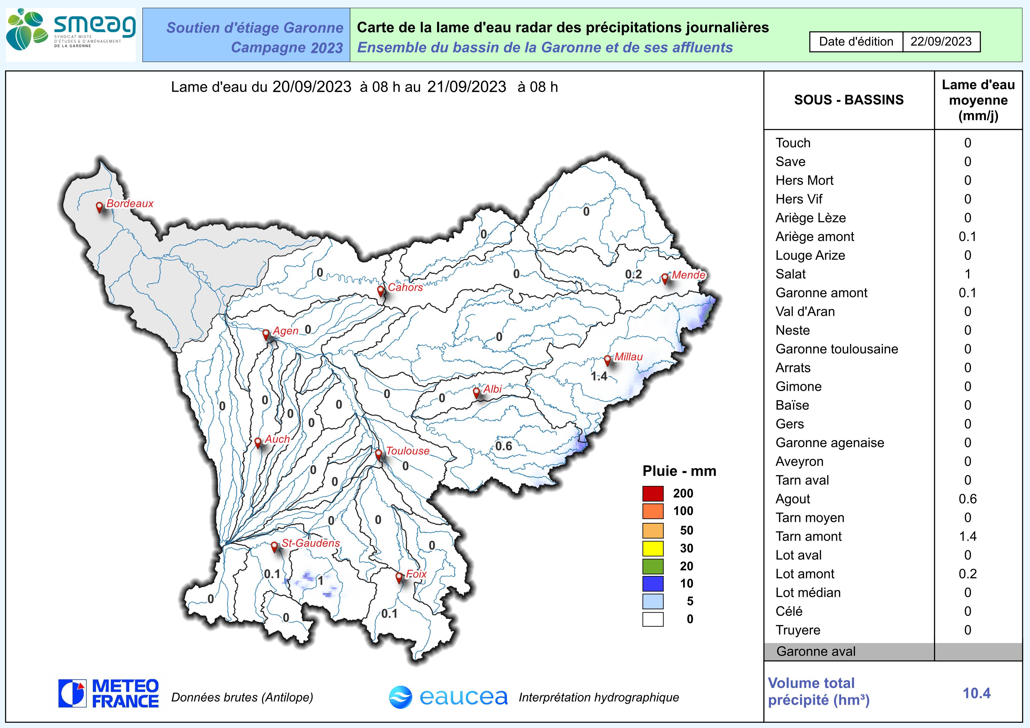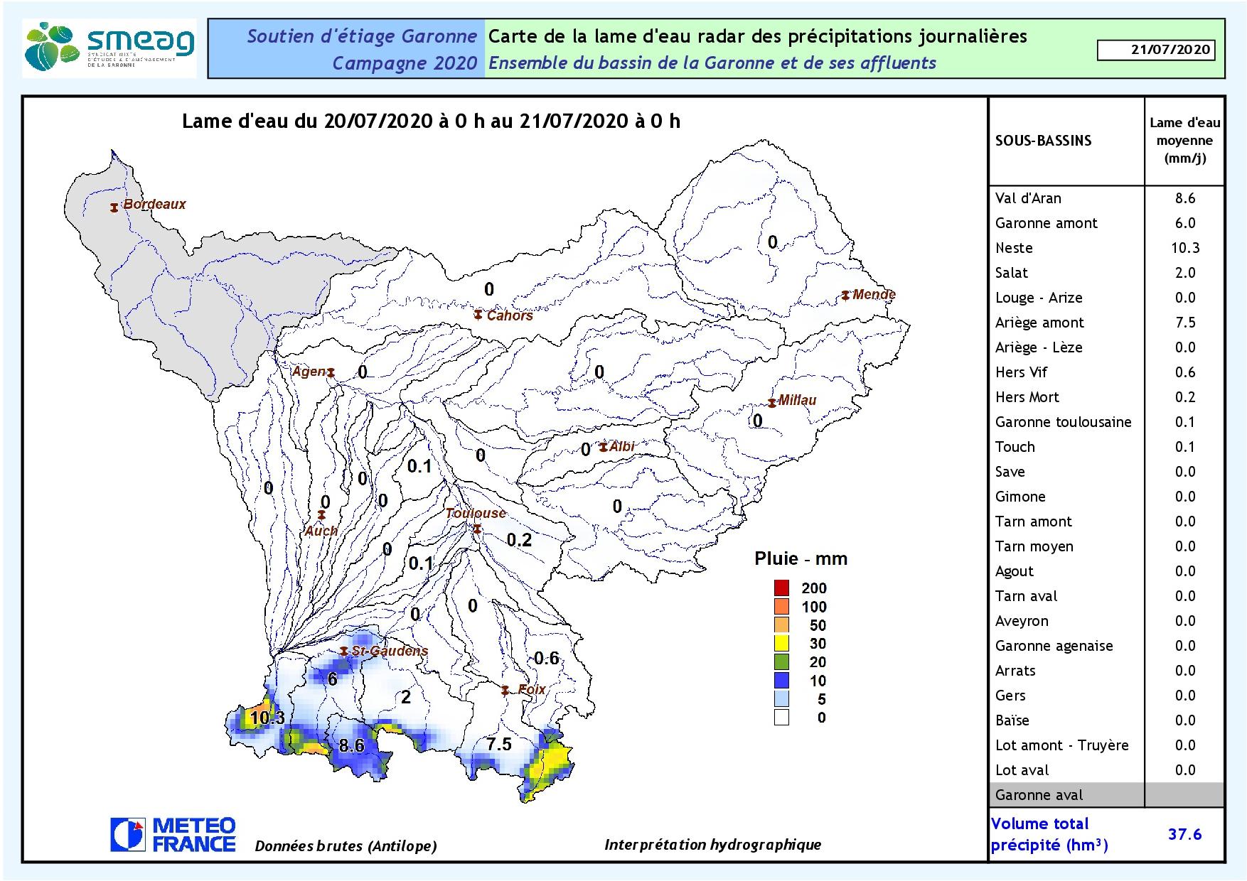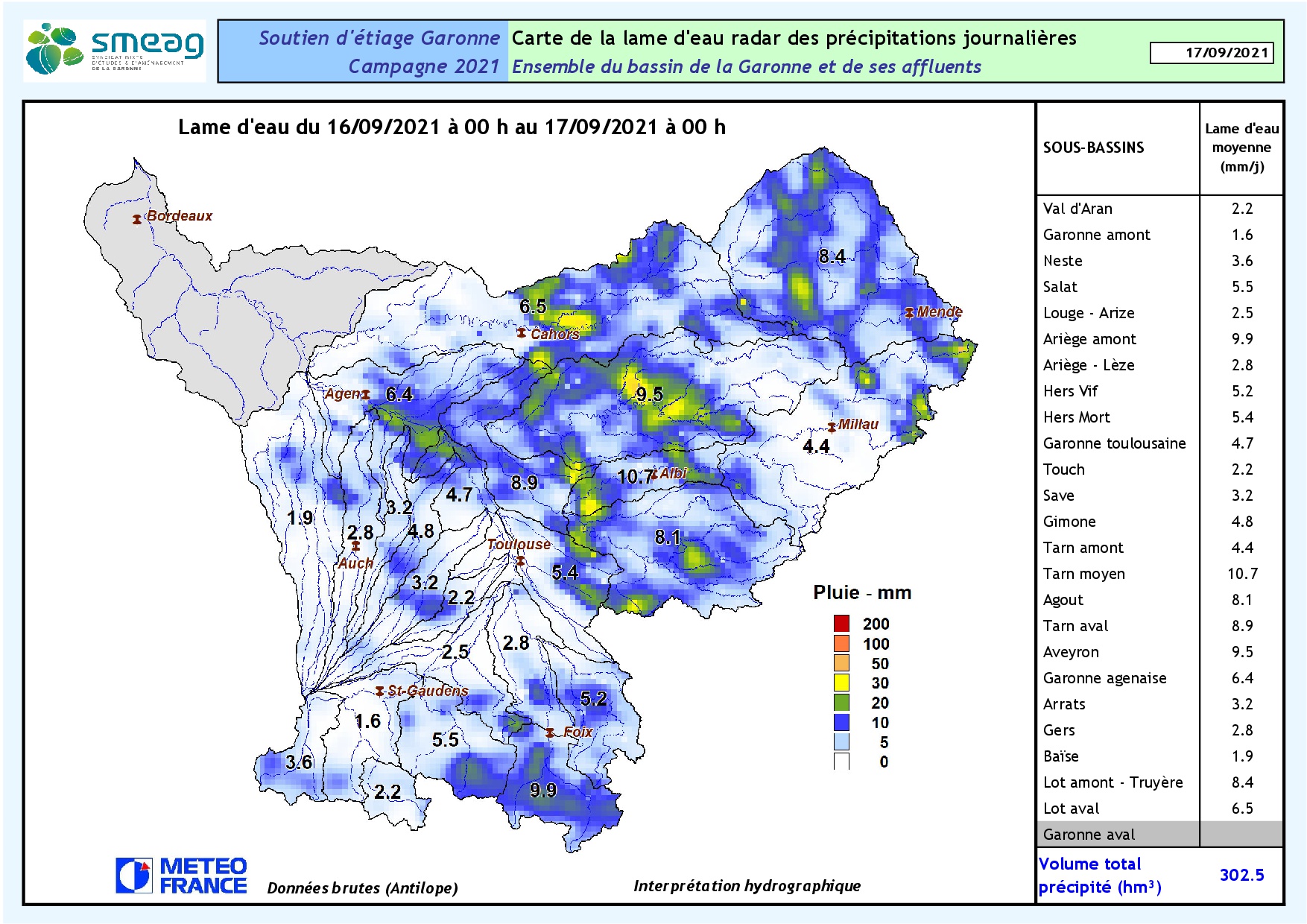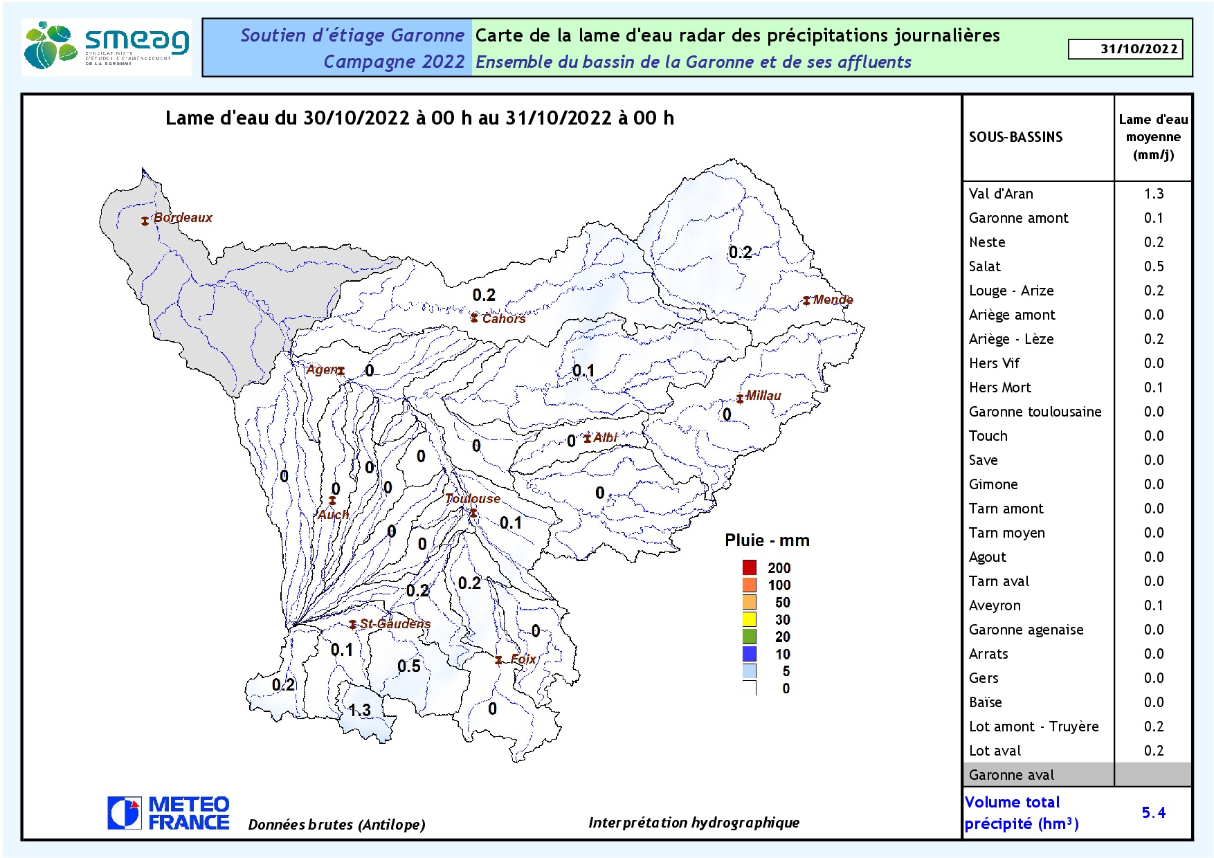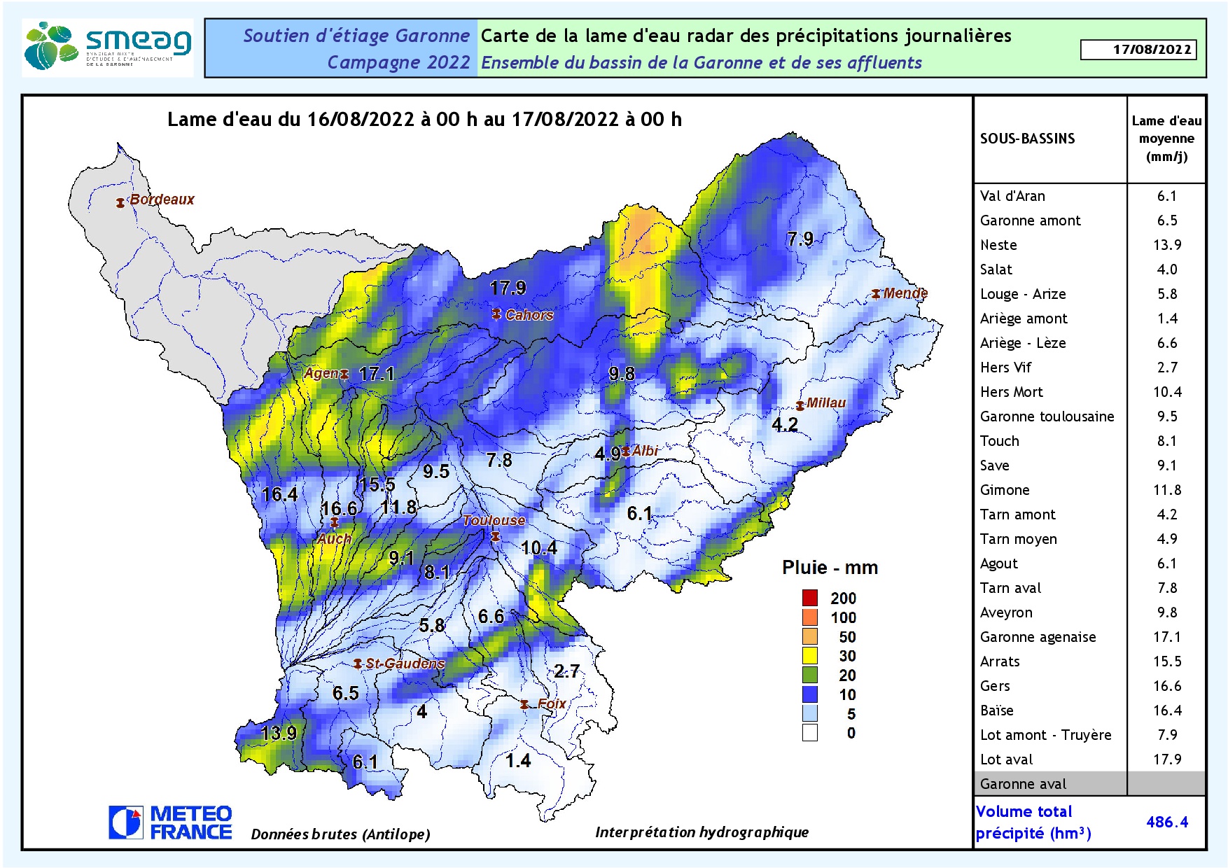 Cette carte illustre les quantités d'eau précipitées sur 24 heures par sous-bassins versants (source : images radar Météo France).
