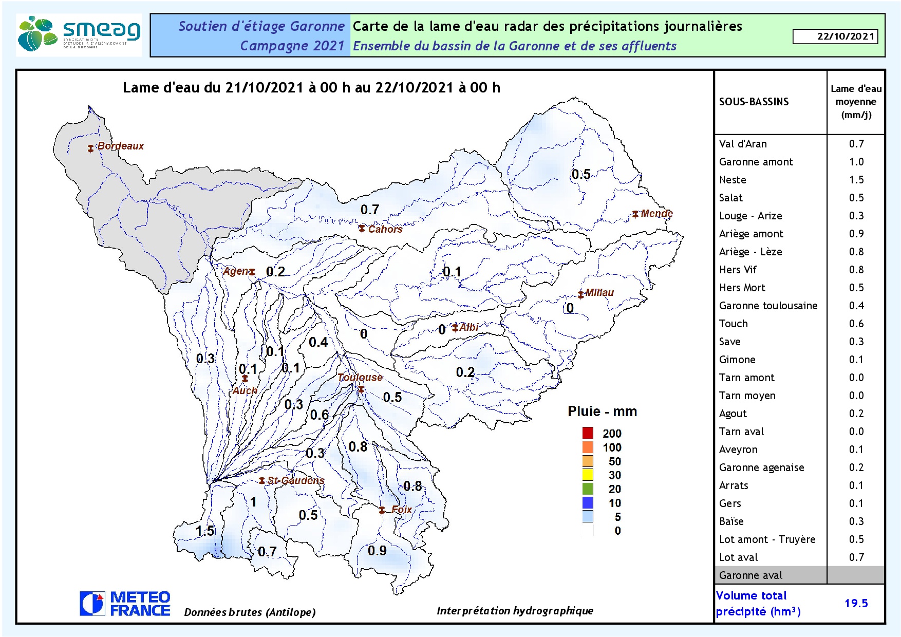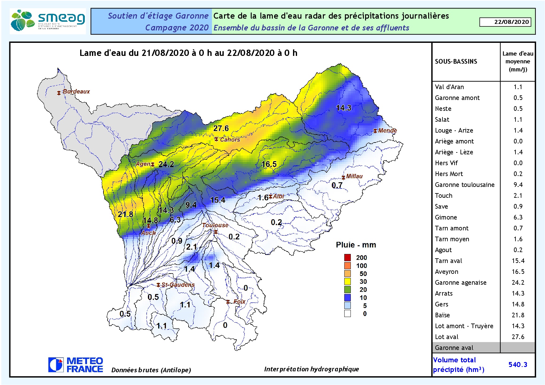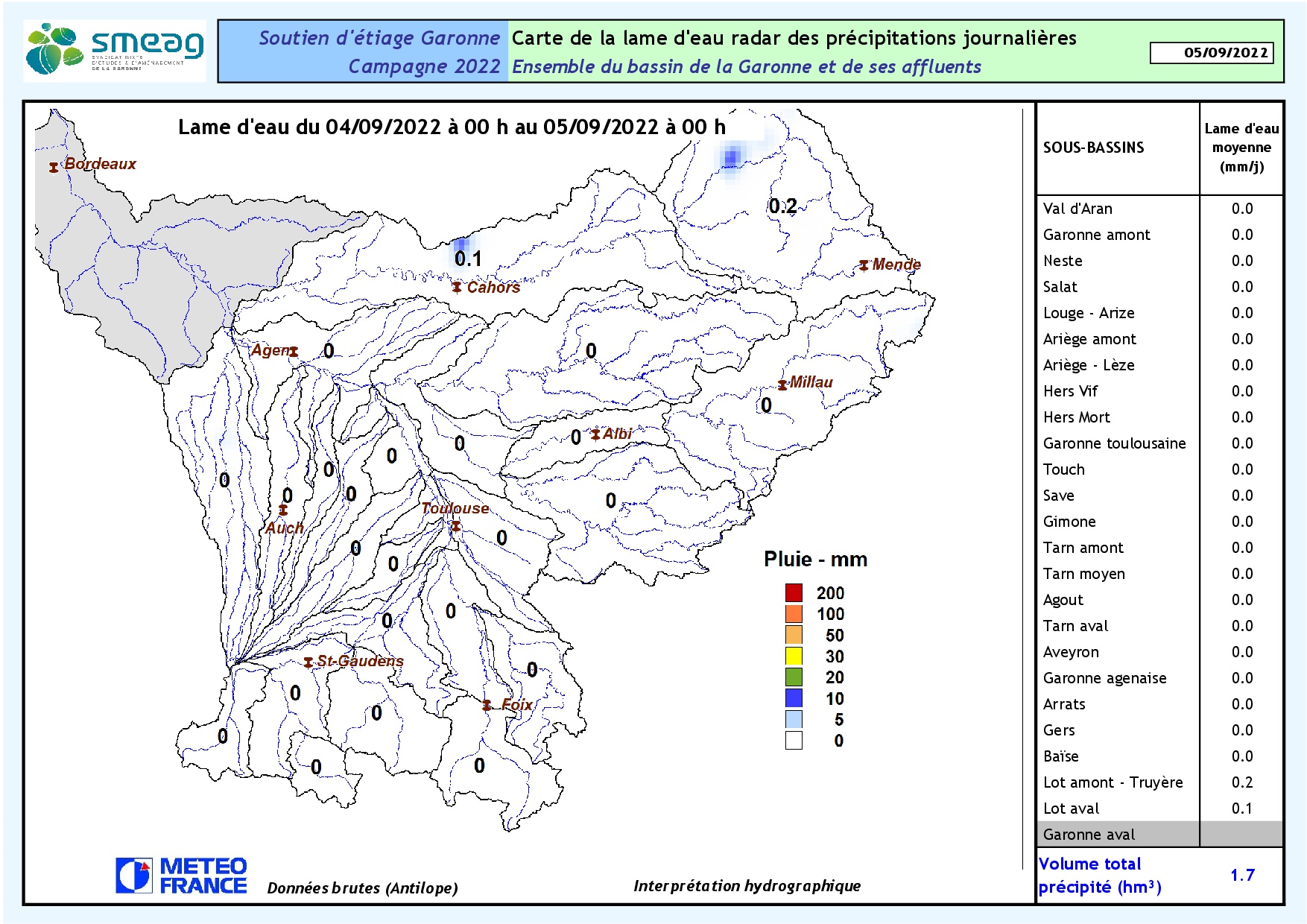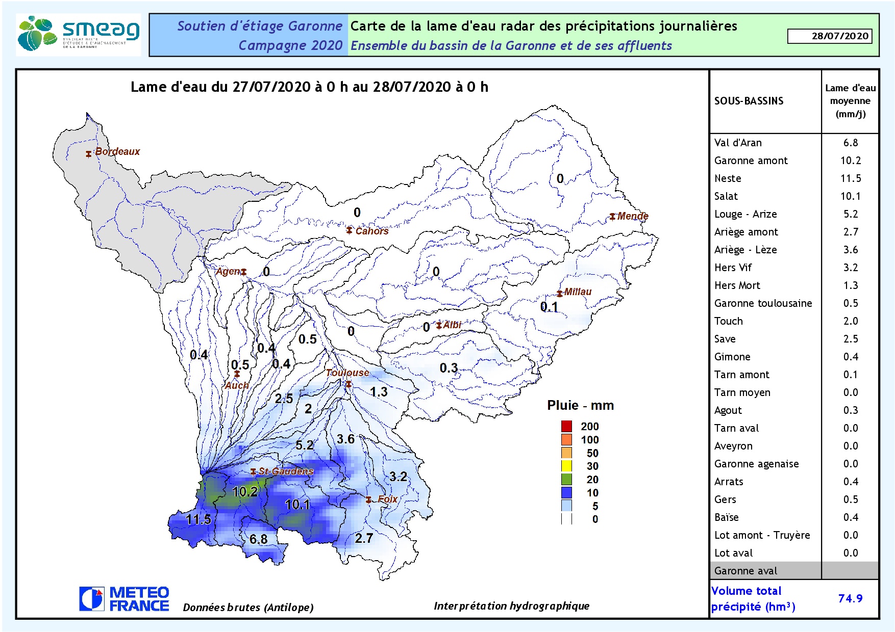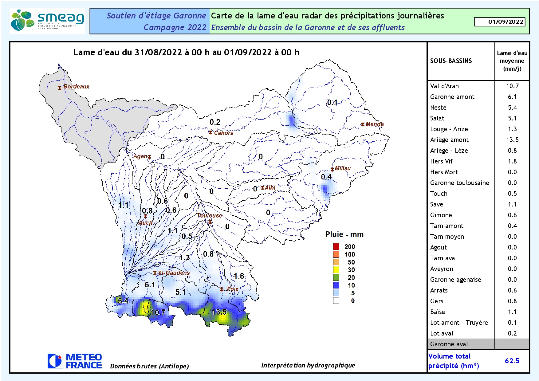Cette carte illustre les quantités d'eau précipitées sur 24 heures par sous-bassins versants (source : images radar Météo France).
