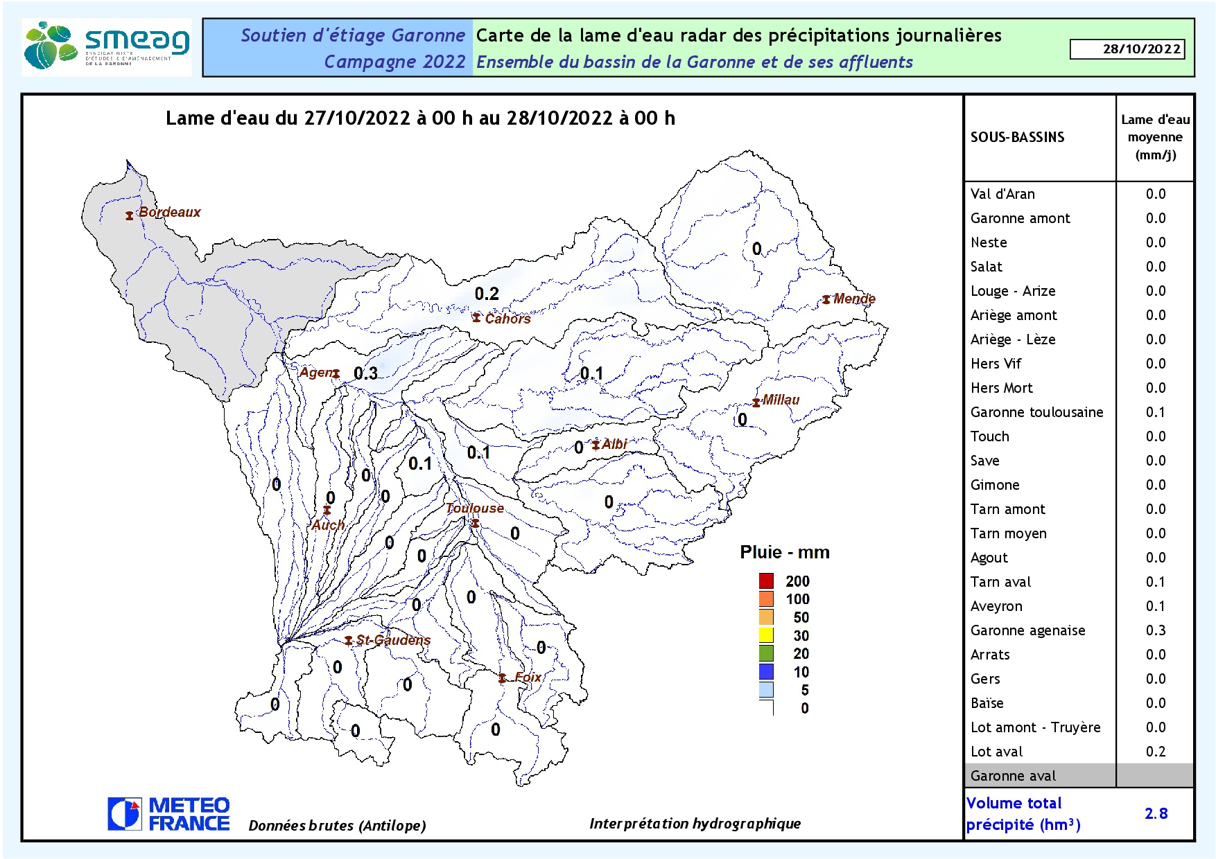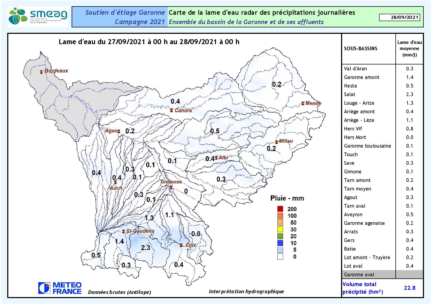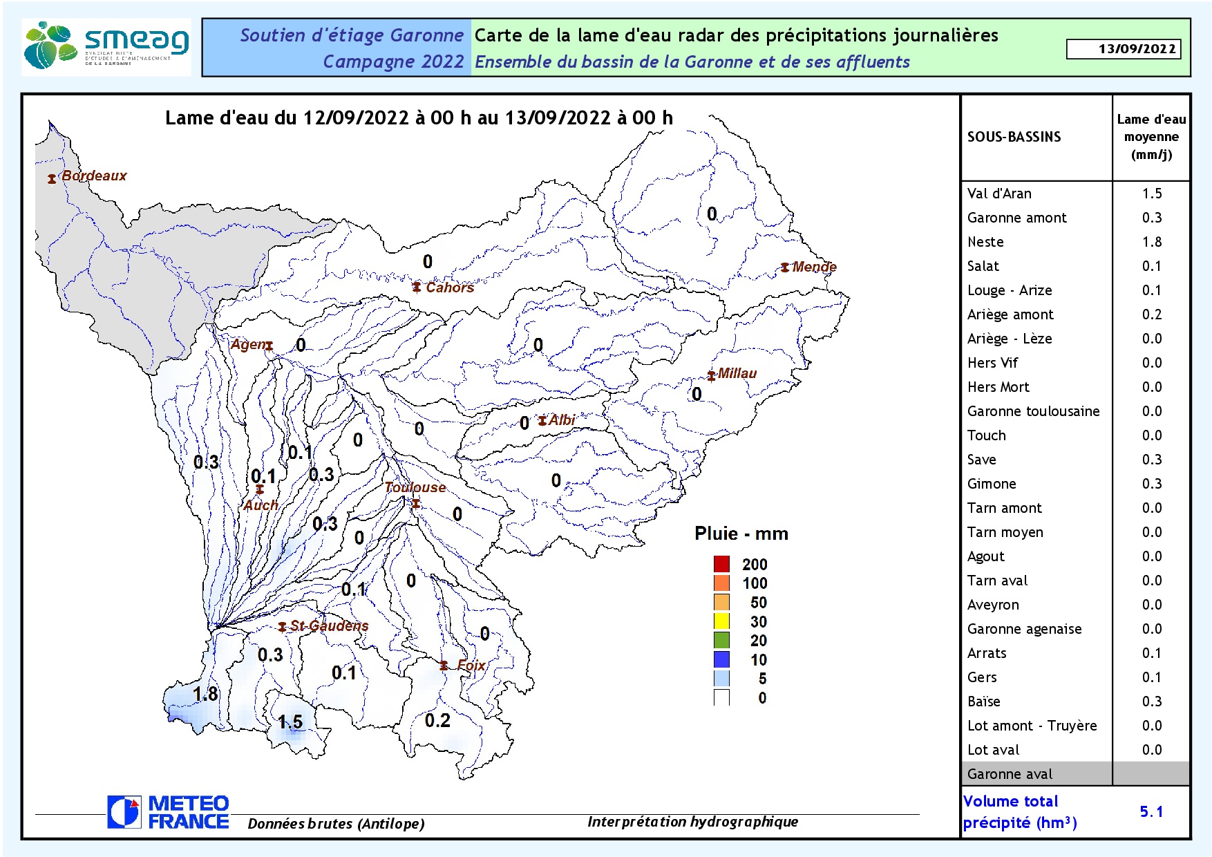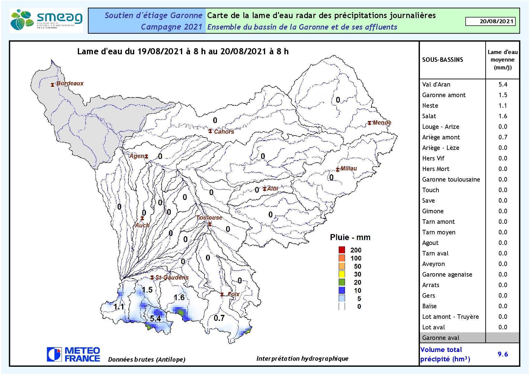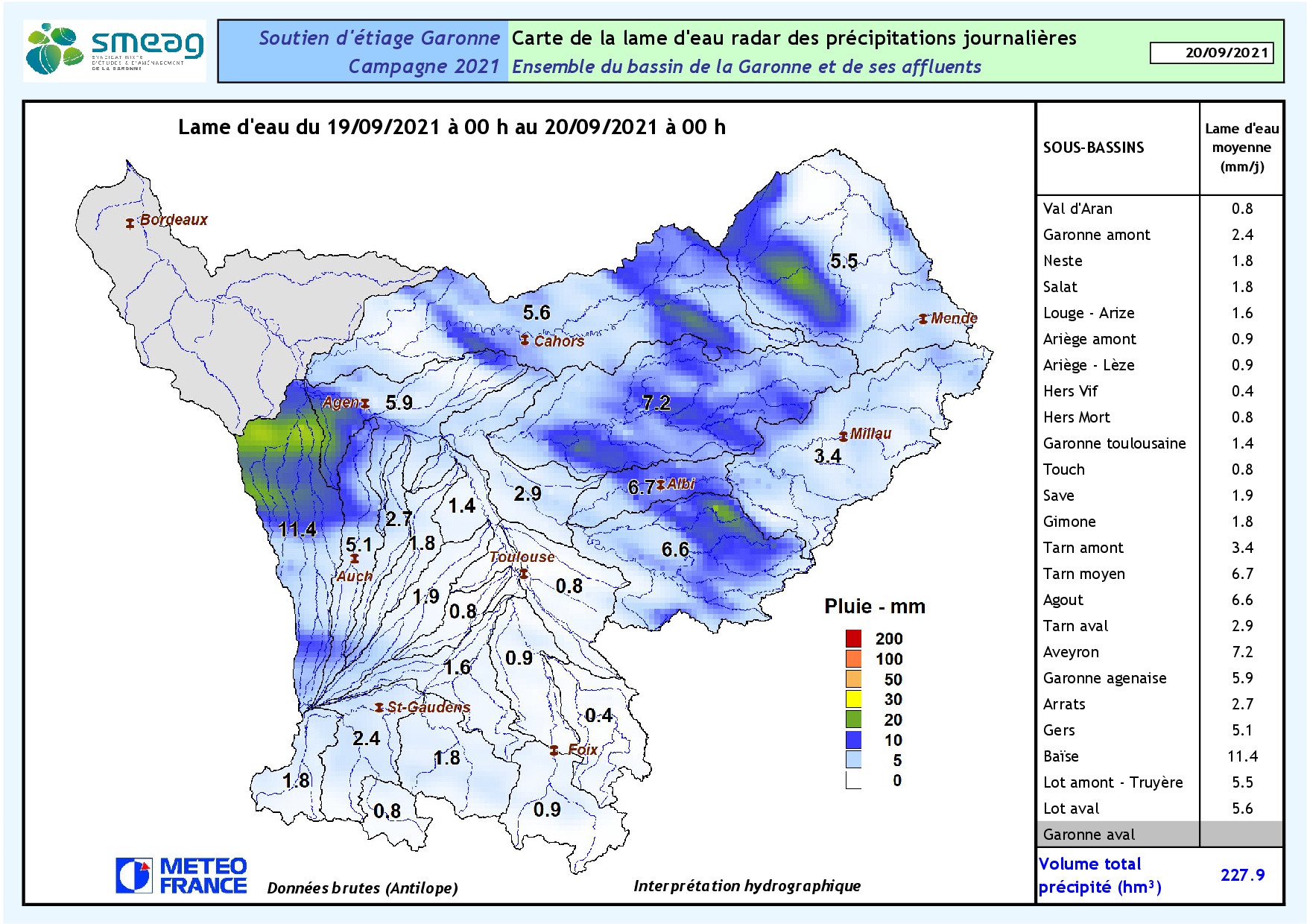 Cette carte illustre les quantités d'eau précipitées sur 24 heures par sous-bassins versants (source : images radar Météo France).