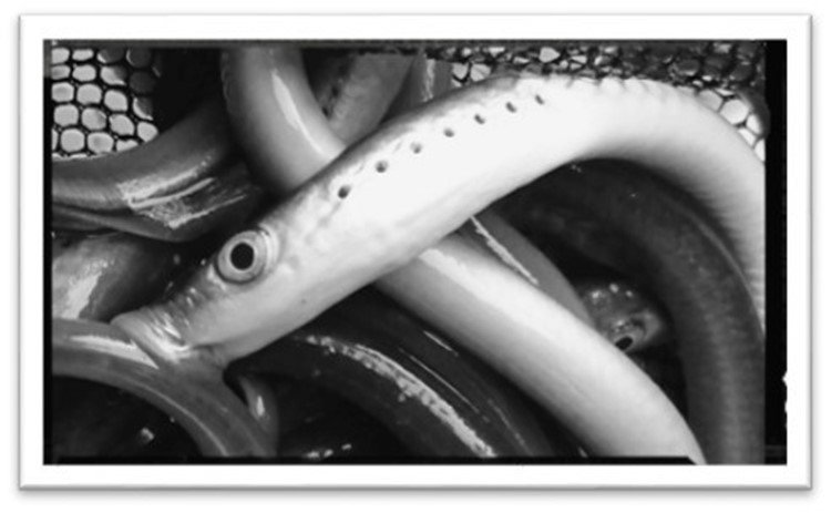 Ammocètes dans un filet (source : photo MIGADO)