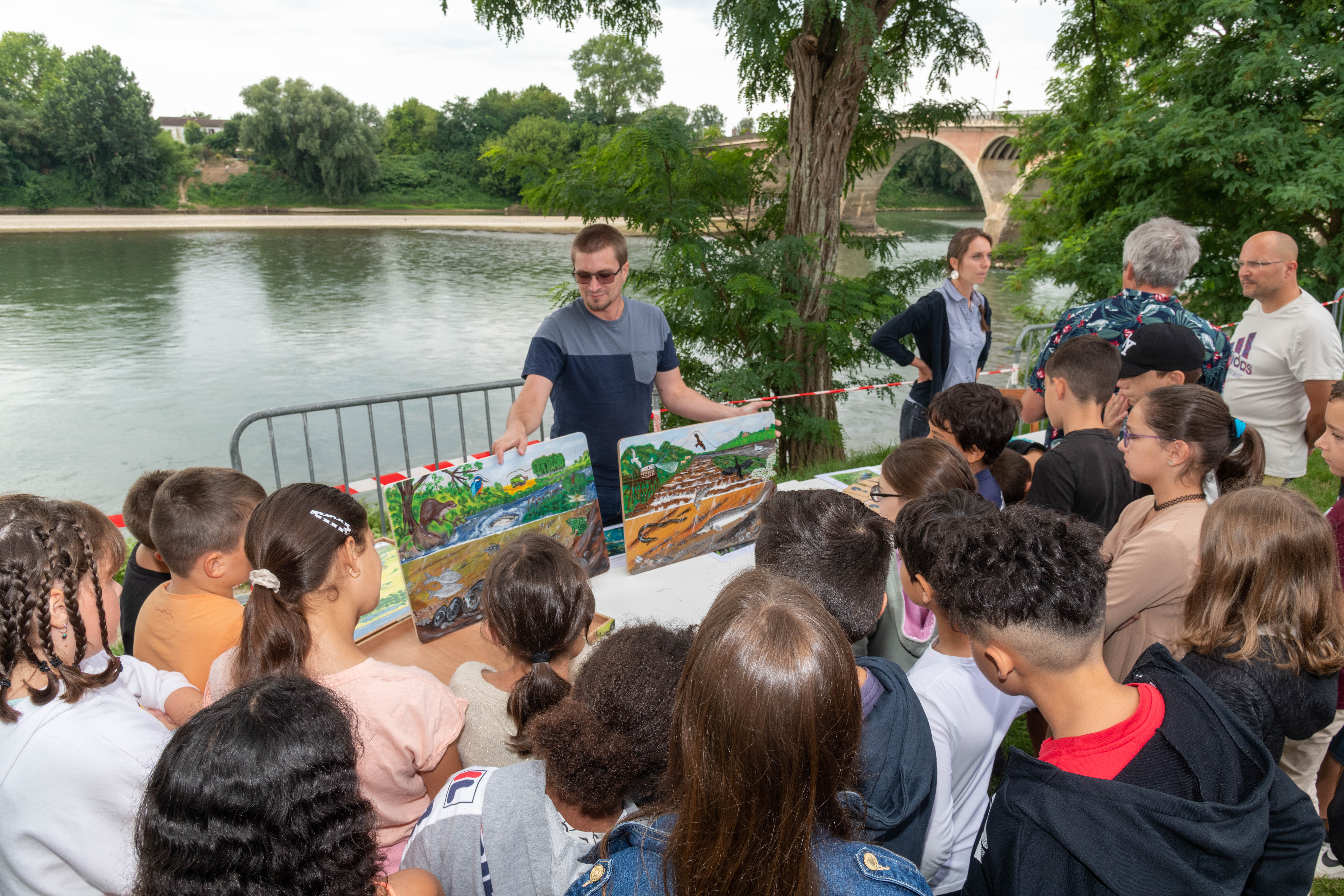 C’est dans ce cadre que l'Etablissement Public Garonne, Gascogne et affluents pyrénéens était présent à Tonneins, ville de départ et à Saint-Macaire, village étape. En effet, plusieurs stands d’animation étaient proposés pour les équipiers et les élèves de l’école primaire qui se sont déplacés pour l’occasion. Ils ont pu découvrir la faune et flore de Garonne à travers des supports pédagogiques variés comme des puzzles, jeu de memory ou encore un plateau aimanté représentant la Garonne de sa source pyrénéenne à l’estuaire de Gironde.