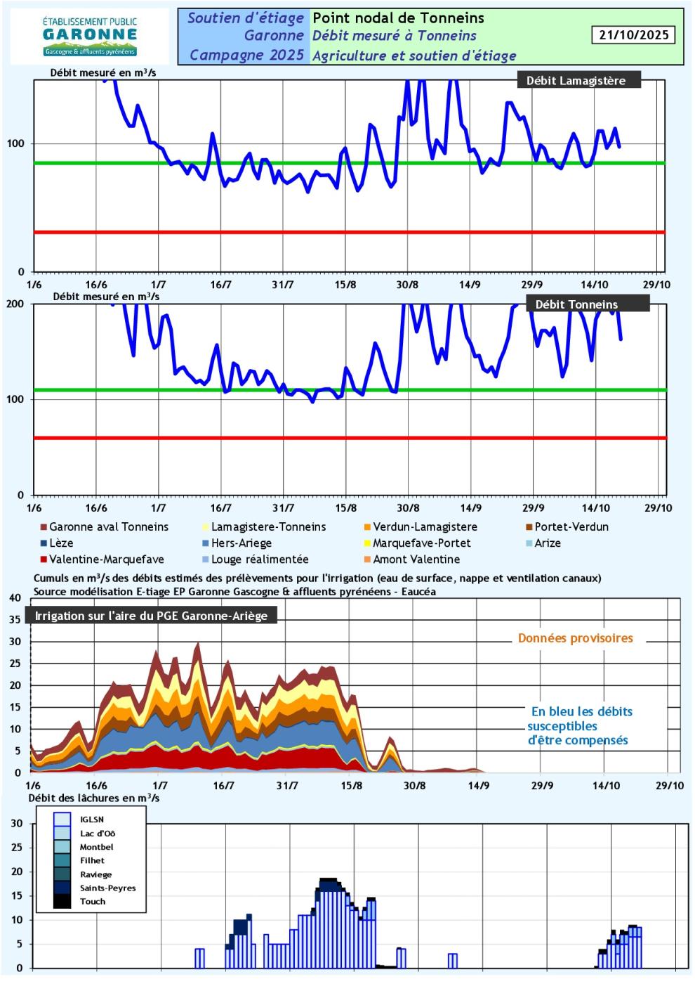 Ce graphique illustre le niveau des prélévements agricoles (mesures et échantillonnages) en différents points du bassin.