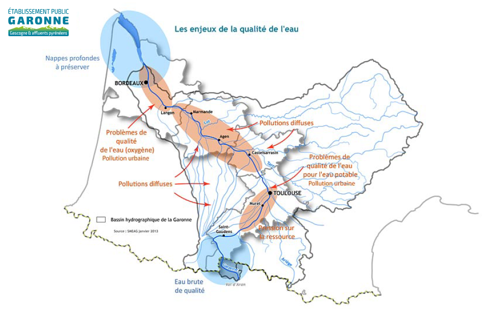 La Garonne et ses affluents sont soumis à des attentes fortes en matière d’usages (eau potable, pêche, activités agroalimentaires, etc.) dont le maintien ou le développement nécessite une bonne qualité d’eau.